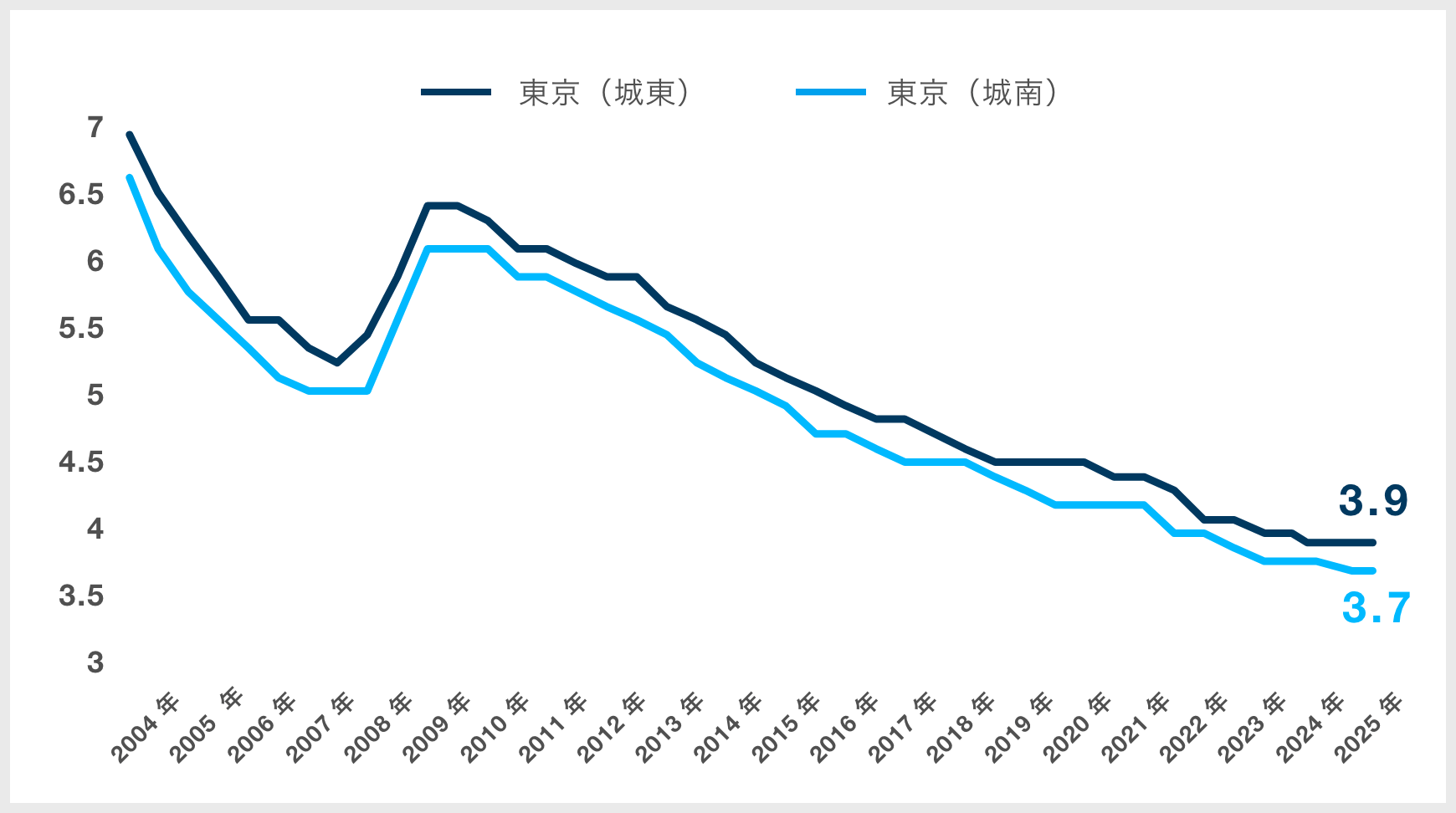 賃貸住宅(ワンルーム)の期待利回り推移