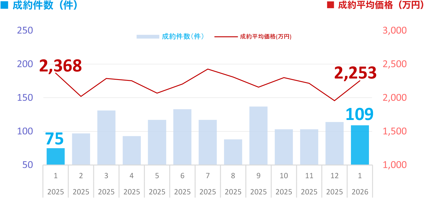 ※本ページ及びグラフは、財団法人東日本不動産流通機構『2026年1月度Market Watch』(全国版)に基づき、東急リバブル㈱が作成いたしました。