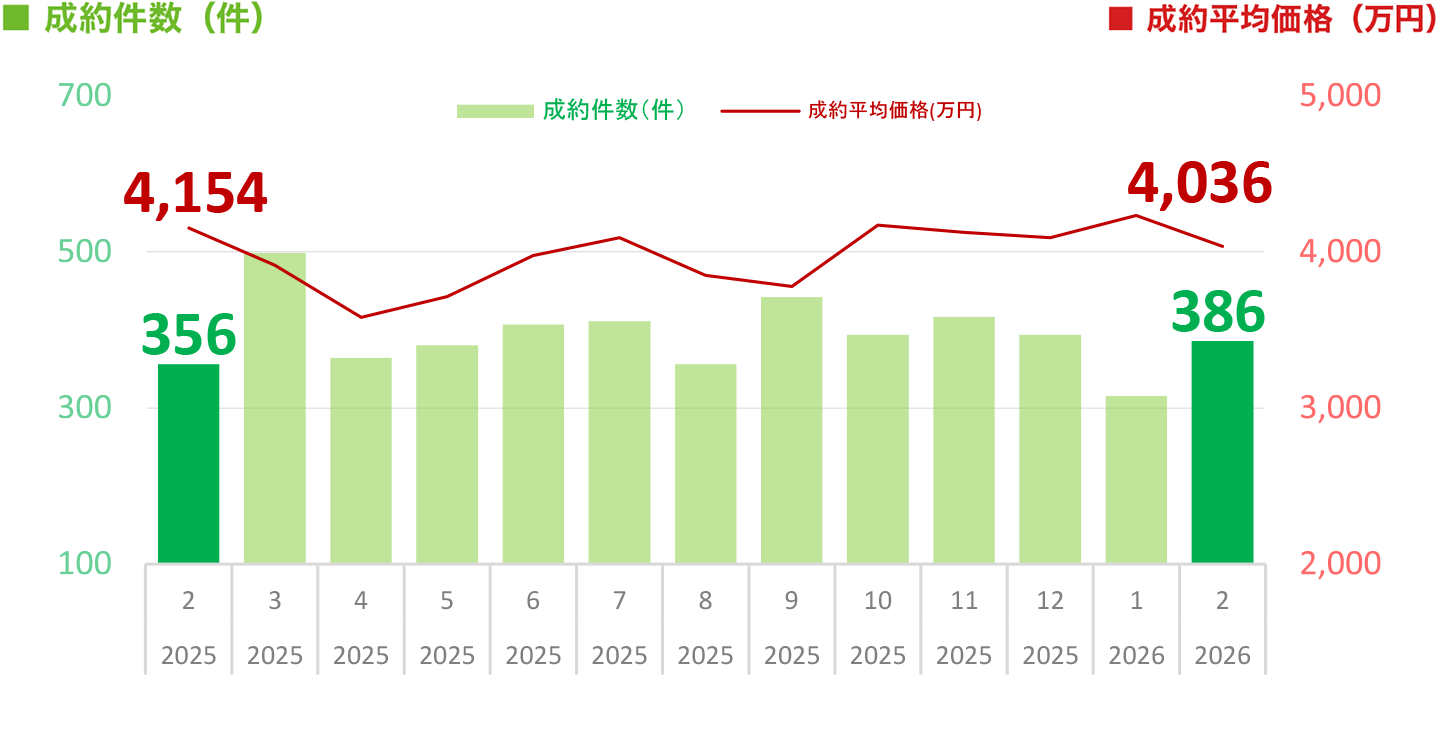 ※本ページ及びグラフは、財団法人東日本不動産流通機構『2026年2月度Market Watch』(全国版)に基づき、東急リバブル㈱が作成いたしました。