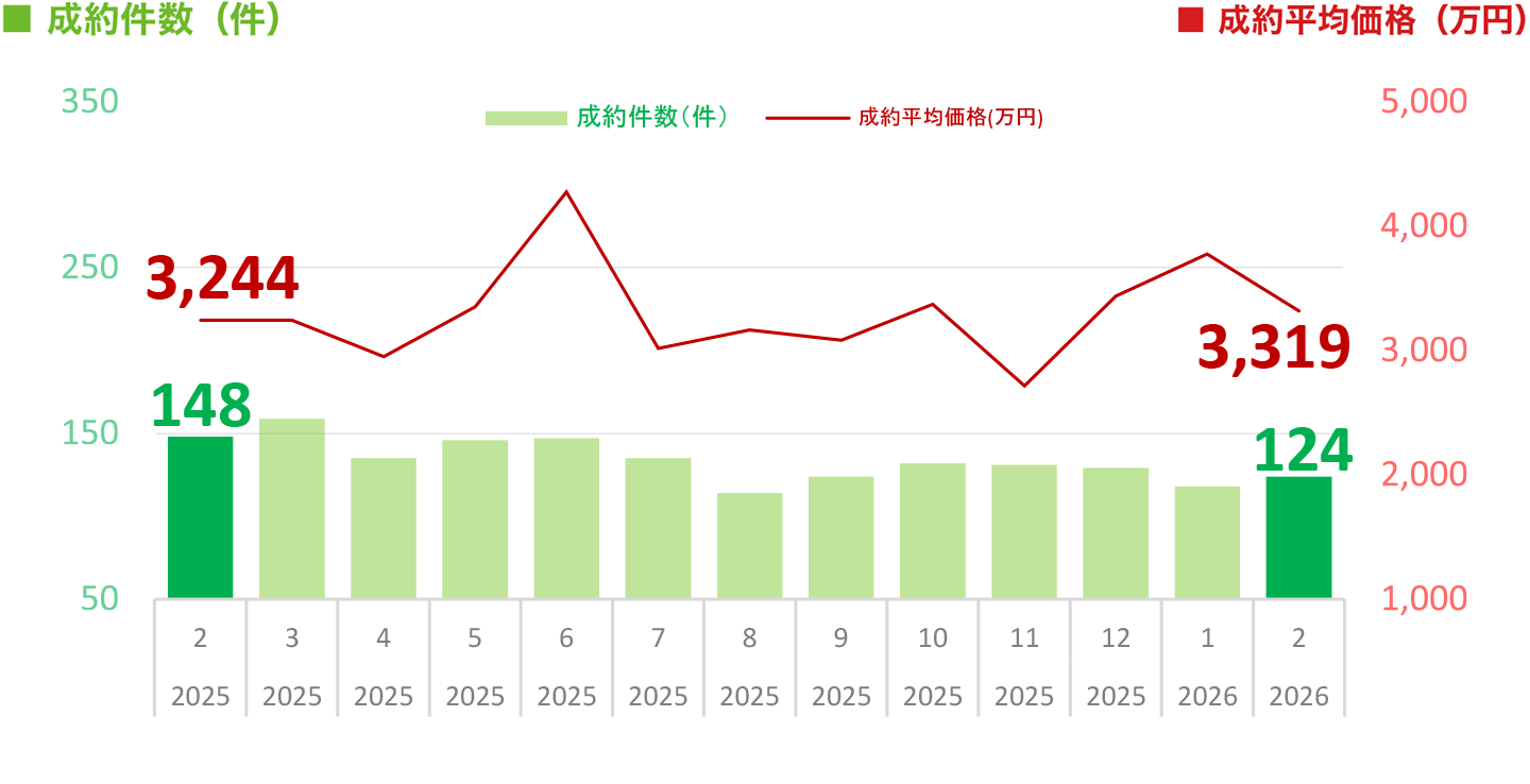 ※本ページ及びグラフは、財団法人東日本不動産流通機構『2026年2月度Market Watch』(全国版)に基づき、東急リバブル㈱が作成いたしました。