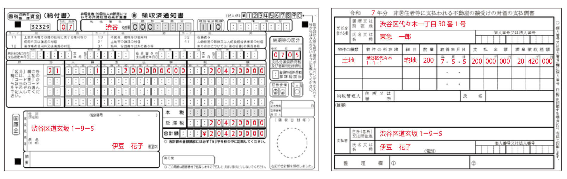 買主又は賃借人は「非居住者・外国法人の所得についての所得税徴収高計算書」に必要事項を記載し、銀行等で原則として翌月10日までに納付を行います。また、買主が個人で不動産事業者である場合又は法人の場合には、「非居住者等に支払われる不動産の譲受けの対価の支払調書」を、賃借人が個人で不動産事業者である場合又は法人である場合には「非居住者等に支払われる不動産の使用料等の支払調書」を翌年1月末日までに作成し、税務署へ提出しなければなりません。同時に売主又は貸主へ交付を行います。