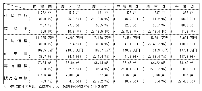 新規供給に対する契約戸数は1264戸で、初月契約率は71・7%。エリア別では都下と埼玉県が50%台となった一方、都区部が70%台、千葉県が80%台と好調だった。